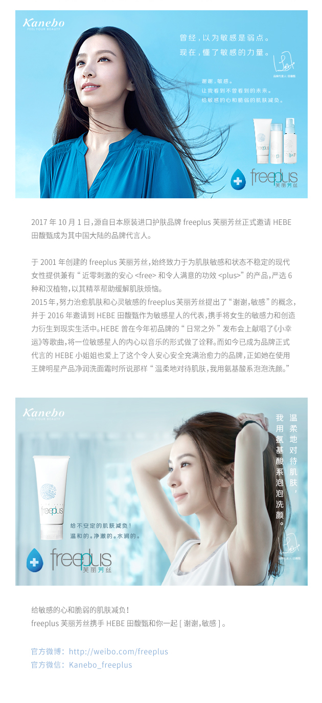 freeplus芙丽芳丝中国(大陆)启用全新代言人 —— HEBE田馥甄
