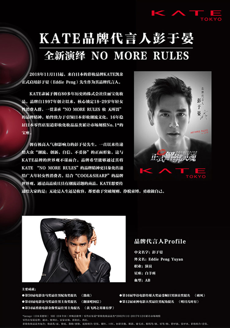 KATE品牌代言人彭于晏 全新演绎NO MORE RULES
